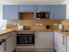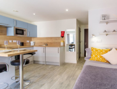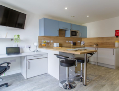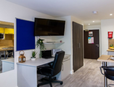 Studio户型还配备独立开放式厨房,冰箱,微波炉,炉灶,烤箱,油烟机应有尽有,且Studio还配有只能平板电视(不含TV Licence)