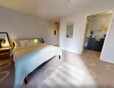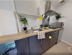 En-suite(独立卫浴共享厨房房型):仅与 1-4名室友共享公共区域,有较少的2B房型,配备私人独立卫浴,平衡 “轻社交” 与个人隐私,居住舒适度更高。厨房与客厅区域需与其他住户共享,兼顾隐私与社交需求。