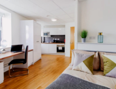 公寓主要提供 En-suite(独立卫浴,共用厨房)和 Studio(独立卫浴,独立厨房)两种房型。房间内配备了大床、书桌椅、衣柜等,Studio房型还配有电视