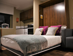 全Studio户型,宽敞通透,均配双人床、独立卫浴与可开窗户,采光极佳,独立厨房设备齐全(电磁炉、微波炉、冰箱),暖气稳定抗湿冷,书桌储物空间充足。
