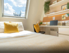 24 小时智能门禁(刷脸 + 刷卡双验证)+安保巡逻 + 公共区域监控,安全感拉满;前台提供 代收快递服务(含冷链包裹存放),维修团队 响应及时,生活问题快速解决。公共区域功能超全:自习室(配充电插座 + 护眼灯,赶 due 氛围浓厚)、全景落地窗健身房(免费使用,俯瞰伦敦街景锻炼超带感)、社交休息室(配桌游 + 电视,常有同学组队放松)、屋顶露台(傍晚看伦敦天际线,拍照打卡很出片),还有洗衣房(带烘干功能)、电梯、自行车库及自动售货机(深夜饿了买零食超方便)。物业每月组织主题活动(披萨派对、留学生交流会等),85% 住户是 KCL、LSE、UCL 学生,新生轻松认识同校伙伴,快速融入伦敦留学生活。