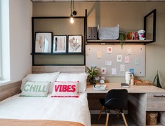 居住空间设施:各房型均配备高品质基础设施,室内配备床、书桌与衣柜;多数房型设双人床,部分房型带私人阳台;En-suite 系列房型配备专属私人浴室;Duplex 系列为复式公寓,拥有开阔的开放式厨房与超大客厅,所有公寓均配备洗碗机与洗衣机 / 烘干机,提供充足储物空间,且全屋采用地暖与设计师定制厨房