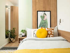 En-suite(独立卫浴):4-8 人共用厨房,厨房配冰箱、微波炉、烤箱,满足日常做饭需求