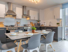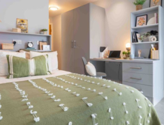 Ensuite房型是4-6人共用厨房客厅,独立卫浴,住房面积按楼层为13-20平方米,床型为3/4大小床;
