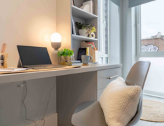Studio独立厨房独立卫浴,提供全套的现代化厨房、卫浴和书桌,住房面积按楼层为15-24平方米不等,均提供双人床