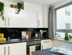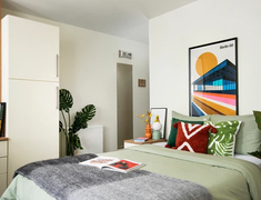 房型分studio和ensuite两种房型,满足各类需求。ensuite戸型为4-8人间,厨房配有冰箱、微波炉、橱柜、餐桌、烤箱等设施。studio私人独立空间,含独立厨卫,配小双人床,适合偏好独处的学生,所有房间均含定制储物空间、书桌、床头柜、嵌入式灶台、烤箱、冰箱,满足居住与学习基础需求。