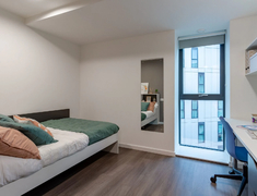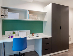 -Pavilion Court 提供 En-suite(独立卫浴,共享厨房)和 Studio(独立厨房和卫浴)两种房型,En-suite房型面积13-25平,配备书桌、衣柜、暖气等基本家具,共享厨房配有炉灶、微波炉和冰箱等。Studio房型面积20-37平,拥有设备齐全的私人厨房。租金已包含水费、电费和财物保险,这意味着你无需再为这些账单操心。
