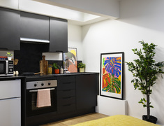 En-suite 房型:独立卫浴,多人共用厨房,卧室有床、书桌及充足储物空间,厨房配冰箱、微波炉等。Studio 房型:独立厨卫,现代化设计,含双人床、书桌与充裕储物空间,满足独居需求。