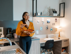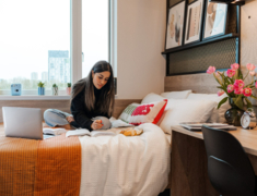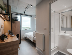 这处公寓步行30分钟可达格林威治大学,设施齐全,包含健身房、游戏室(配备PS5)、KTV等,提供En-suite和Studio房型,费用全包且享有24/7专属团队服务,还有丰富活动和免费早餐、咖啡等福利,全新共享空间包括屋顶露台、私人餐厅、卡拉OK、电影院等,交通便利,靠近多所高校及超市、车站。