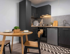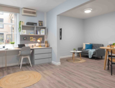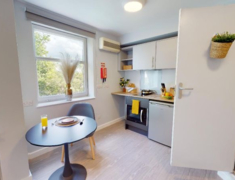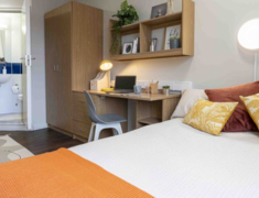11 种房型适配多元需求!Ensuite 为多人共用厨房客厅 + 独立卫浴,面积 12-13+㎡,床型从单人床到 3/4 大小床;Studio 独厨独卫,面积 20-25+㎡,均配双人床,居住空间宽敞~ 2015 年全面装修,部分房间带落地窗,采光极佳,厨房配齐冰箱、微波炉等设备,拎包入住无压力。公共设施超丰富:免费健身房随时撸铁,游戏区有台球桌、乒乓球桌,娱乐区 + 室外活动区满足休闲社交;自习室安静无扰,赶 due、小组作业全搞定~ 安全与服务拉满:24 小时门禁 + 监控 + 安保人员,24 小时服务团队 + 维修团队随叫随到;押金仅 350 英镑无管理费,租金包含水电暖气、网络费、财物保险,100Mb 高速 WiFi 全覆盖,无隐藏开销!