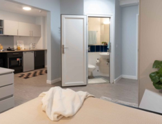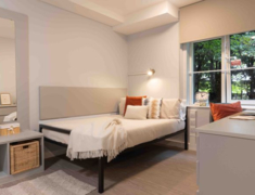 Ensuite房型多人共用厨房客厅,独立卫浴,面积按楼层为12-13+平方米,床型为单人床至3/4大小床。