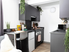 non ensuite面积11-14m²,ensuite面积12-16m²,studio面积21-30m²。共享户型为3-9人间,厨房内包含冰箱,烤箱,微波炉,吸尘器,熨斗和烫衣板。