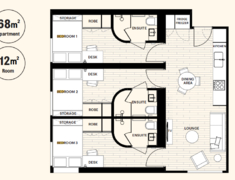 • 多人间卧室两人共享,卫浴独立或共享,客厅厨房共享。