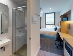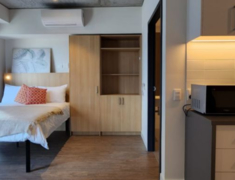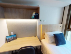 我们所有的房间都配有床、内置衣柜/储藏室、学习桌和椅子。您将享受我们100平方米的巨大健身房、各种公共区域以及俯瞰城市的Sky Lounge令人惊叹的壮观景色