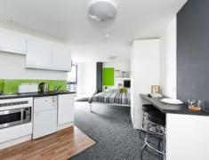 周边生活气息浓厚,步行5分钟内有Tesco超市与多家餐馆,日常采购就餐方便。临近中国城,各式中餐店云集,轻松吃到家乡味。区域治安良好,步行可达市中心商圈,闲暇时可逛商场、看展览,平衡学习与生活。
