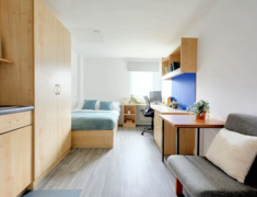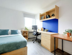Nottingham Two公寓有Ensuite、Studio和1bed三种房型,Ensuite房型提供一张小双人床,书桌椅,书柜,床头柜,双开门衣柜,半身镜,以及独立卫浴。Studio房型还提供一个独立开放式厨房。