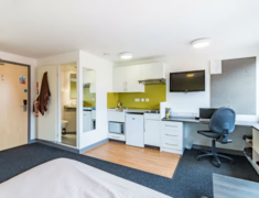 Studio房型为独立卫浴,独立厨房房型,房间设施除包含普通En-suite的设施之外,还有一个独立开放式厨房。