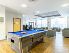 房间内部:房型丰富,涵盖 4/5/6 床独立卫浴套房及标准 / 大型 / 超大号 studio,均配电视、舒适床、书桌及储物空间,暖气齐全,满足合租或独居需求。公寓设施:实用配置拉满!专属自习区专注赶 due,游戏区有台球、乒乓球桌解压;24 小时驻场维护团队响应及时,有问题不用等。含财产险、洗衣房、安全自行车存放处,200Mbps 高速网覆盖,全包账单无额外开销,CCTV 保障安全。