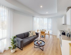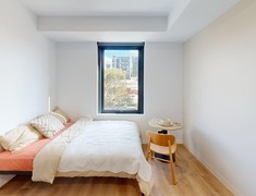 生活辅助设施:提供 120 个自行车及电动自行车停车位,方便住户存放交通工具;公寓内设有洗衣房,配备洗衣机、烘干机及熨衣板,使用洗衣机和烘干机需支付少量费用;有驻场工作人员,可协助住户处理日常需求,还通过 “住宿生活计划”(Residential Life program)提供关怀与支持,住户可前往前台或联系工作人员获取帮助。