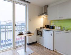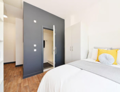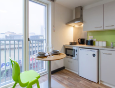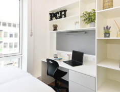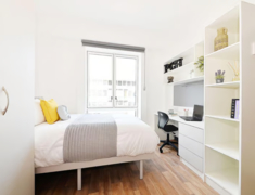 Plymouth Cross House在普利茅斯的学生住宿为学生提供了宽敞的Studio或现代化的共享ensuite房型;房间内部设施:小型双人床,桌子,干湿分离的卫生间,厨房设施。包水电费及网费;共享厨房设备齐全,冰箱、烤箱、电磁炉都有,看起来也干净。橱柜每人有分好格子的。