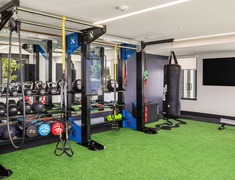 覆盖生活、健身、办公、社交及宠物关怀:前台大堂提供免费咖啡与糕点,庭院、篝火区等户外空间便于休闲互动;多层健身中心配备专业器材与智能训练设备,还提供定制课程;联合办公空间满足远程办公需求,地下酒吧则为社交聚会提供私密豪华场景;此外,宠物活动区与水疗中心也为养宠住户提供了便利,全方位提升居住体验。