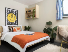 生活必备设施:可容纳218名学生的大型学生社区,提供En-suite(独立卫浴共享厨房房型),4-6人间,配备私人独立卫浴,平衡 “轻社交” 与个人隐私,居住舒适度更高。房租已包含暖气、水费、电费,无需额外分摊;公寓内(含房间及公共区域)全覆盖 Wi-Fi,且提供超高速宽带,满足线上学习、娱乐需求。提供自行车存放处、自助洗衣房及垃圾分类回收点,解决日常居住基础需求。配备 24 小时监控(CCTV)、24 小时协助服务及驻场服务团队;采用门禁安全准入系统与消防系统,同时为住户提供财物保险,居住安全性十足。