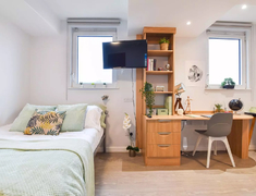 公寓内房型多样,主要包含多人共用厨房的单间,以及单人独占厨房和卫浴的套间。在此基础上,每间房型又根据大小的不同进行了细分,学生可根据个人喜好进行选择。
