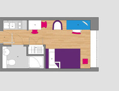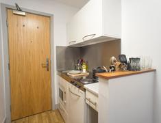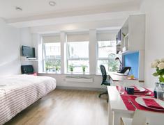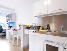 主要房型:独立Studio(26㎡起)与Twodio双人间,均含独立卫浴与厨房;配置:双人床(190cm x 140cm)、双书桌、充足储物空间及USB充电插座;舒适保障:全覆盖暖气、24小时热水,部分房间配备新风系统(需具体确认)