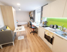 房型只有studio,面积19-26平方。studio房间配置双人床、两张书桌、两个衣柜、私人小厨房和浴室,部分房间还支持免费双人入住。