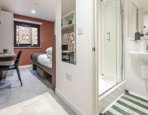 公寓主打En-suite(4-6人共享厨房)和少量Studio,公寓配备智能门禁系统、高速网络覆盖、独立卫浴套间,满足日常生活所需。公共区域设有24小时自习室、影音娱乐空间、24小时健身房,兼顾学习效率与休闲放松。
